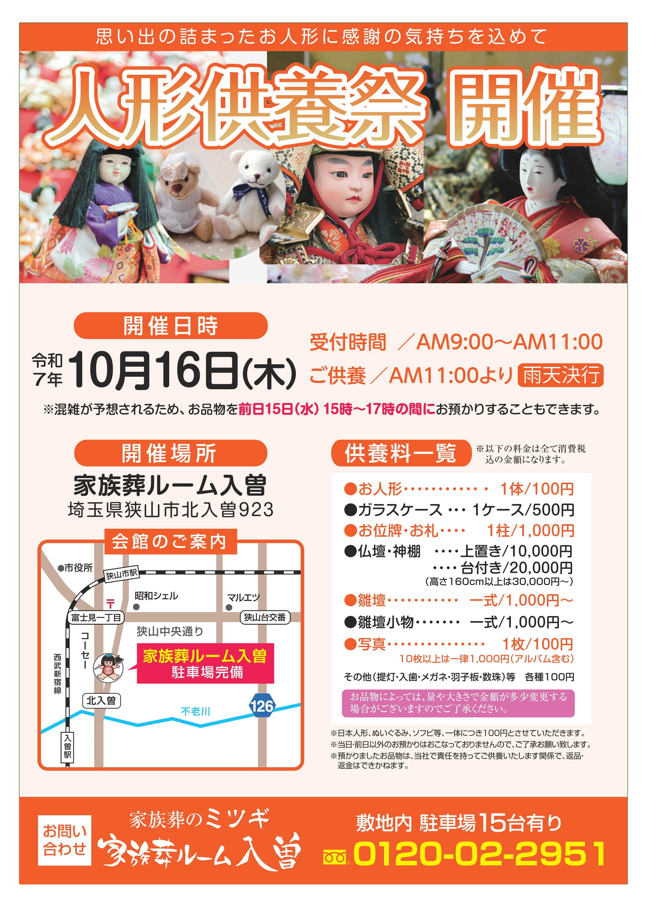開催日時 令和7年10月16日(木) 雨天決行 受付時間 AM9時~AM11時ご供養 AM11時より