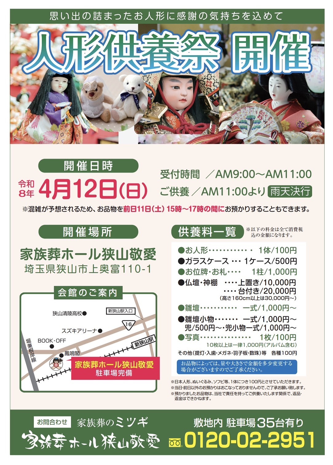 お役目を終えたお人形や供養してからご処分をお考えのお品物などがございましたらぜひこの機会をご利用くださいませ。